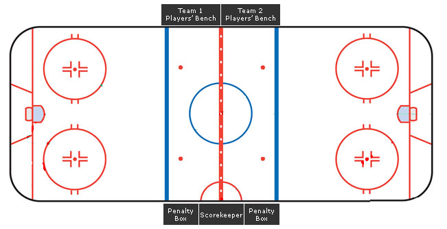- There are five (5) lines on the ice, two (2) goal lines (both at the end of the ice), two (2) blue lines, separating the offensive/defensive zones from the neutral zone, and the centre red line.